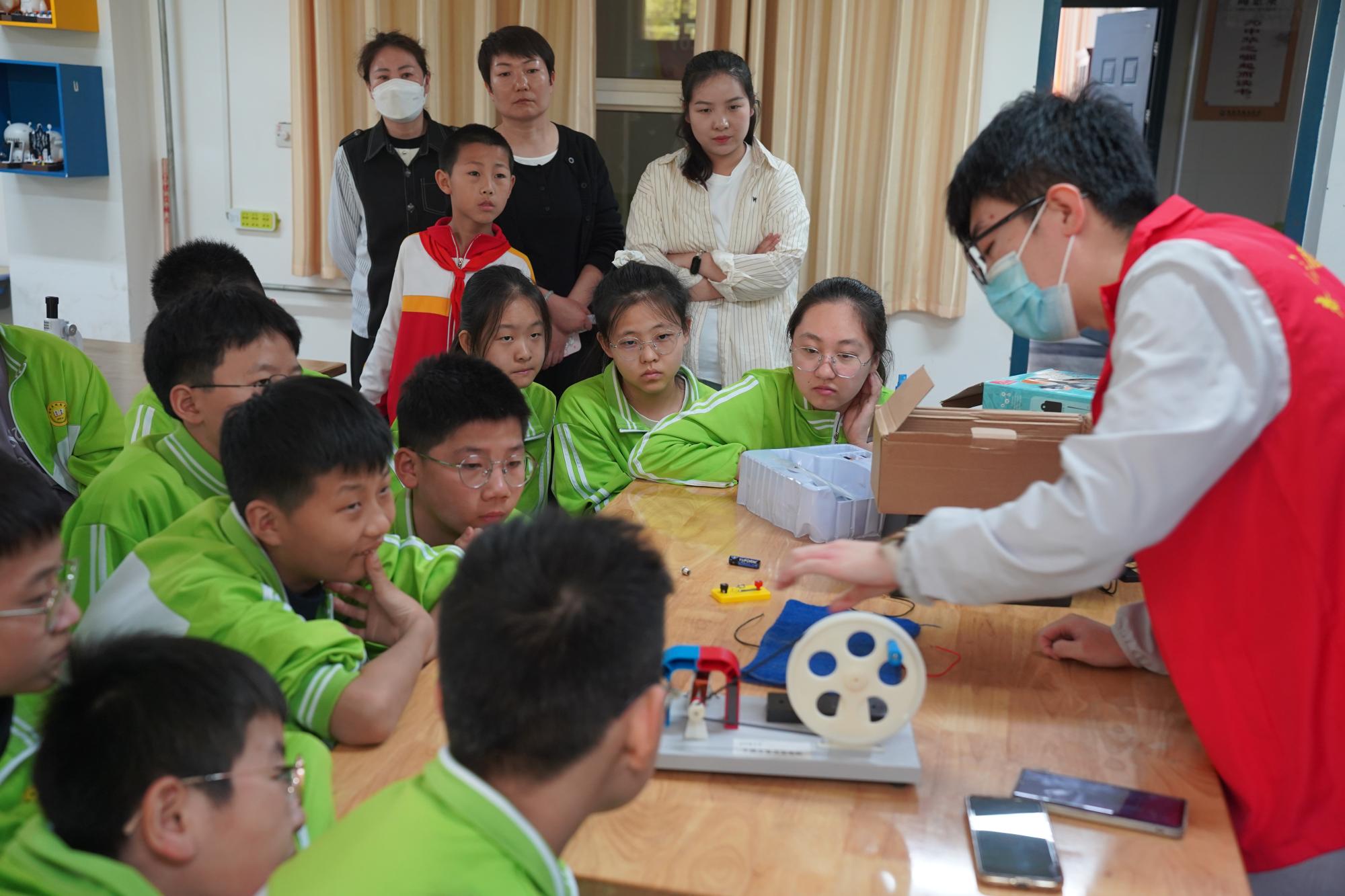 在青年红色筑梦之旅科创小屋中,学院“春雨志愿者服务队”研究生为城南学校科创社团员工开展科学知识微课堂。主题为“VR走进虚拟世界”的科普演讲,让同学们了解VR原理,探索体验虚拟世界。 “光电改变生活”的讲解+实操,让同学们了解了光、电、磁在实际生活中的应用,并深入体验了光电给生活带来的改变。