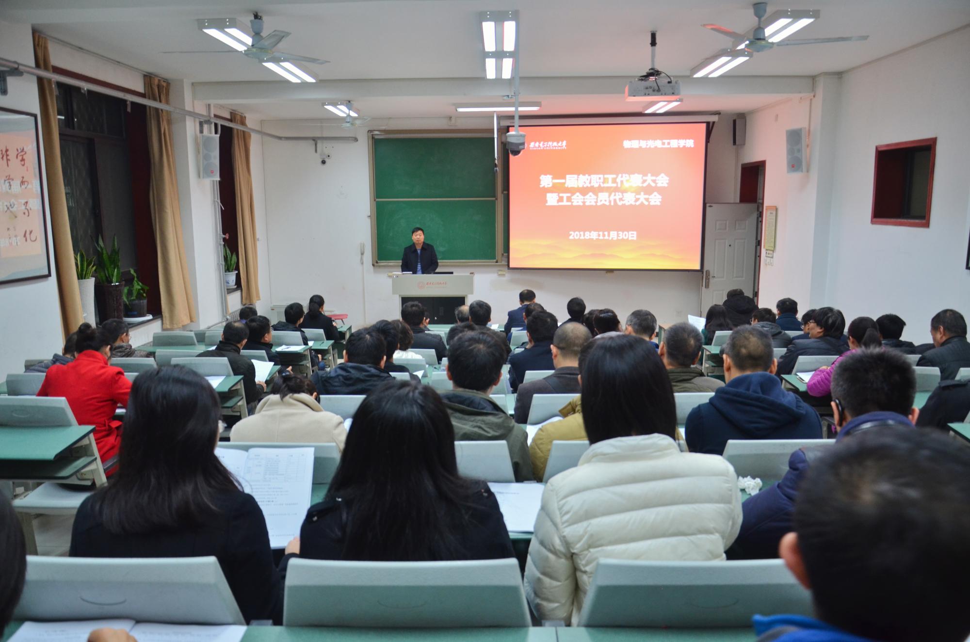 (通讯员:姚娇)11月30日晚,在雄壮嘹亮的国歌声中,物理与yl8858永利集团第一届教职工代表大会暨工会会员代表大会在西大楼106教室召开,会议表决通过了学院2018-2020年专业技术岗位聘任实施方案,投票选举产生了学院新一届工会委员。学院领导班子等53位教代会代表参加了会议。大会由公司党委书记独国社主持。公司党委书记独国社主持大会现场学院执行经理邵晓鹏从学校综合改革背景、方案的制定过程、聘任基本原则、岗...
