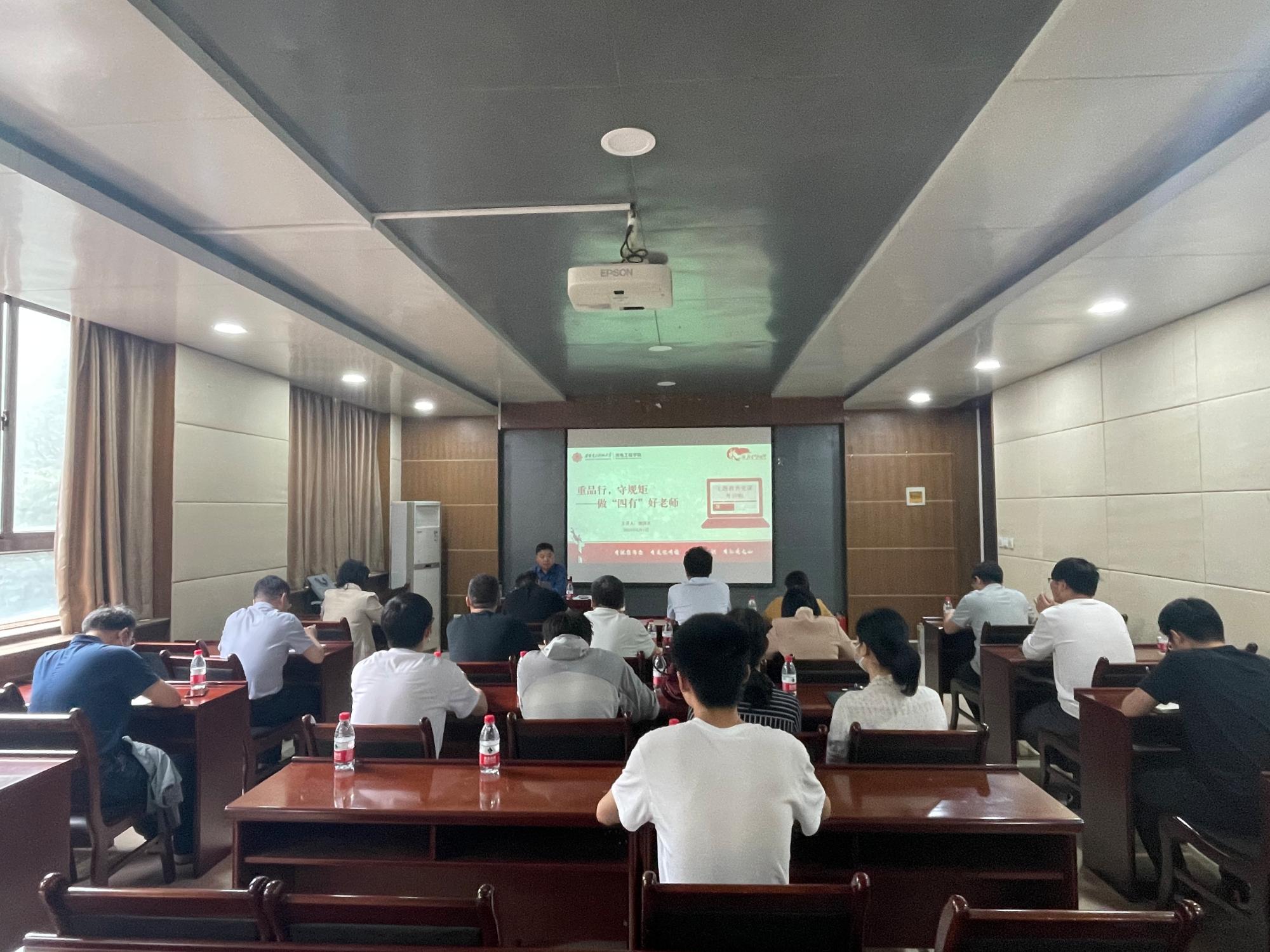 (通讯员:姜萌)为推动学习贯彻习近平新时代中国特色社会主义思想主题教育走深走实,加强公司党风廉政、师德师风建设与主题教育双融双促。6月1日下午,公司党委书记独国社在北校区西大楼Ⅲ区412会议室讲授“重品行,守规矩—做‘四有’好老师”专题党课,学院领导班子、各系(所、中心)主任、党支部书记及教师党员代表参加会议。 会上,独国社围绕学习贯彻习近平新时代中国特色社会主义思想主题教育、新时代对高校教...