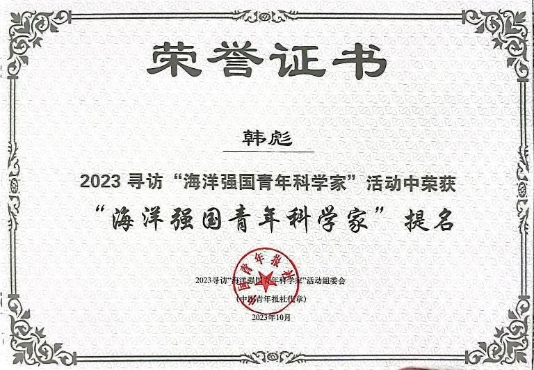 (通讯员 马力 吕强 路壹博)近日,由中国青年报社等单位共同开展的2023年度“海洋强国青年科学家”寻访活动落下帷幕,活动评选出“海洋强国青年科学家”10名、“海洋强国青年科学家”提名20名。yl8858永利集团韩彪副教授荣获“海洋强国青年科学家”提名奖。韩彪老师长期从事海洋光学研究,曾经在科研院所工作多年,并乘坐“深海勇士号载人潜水器”亲自下潜2次海底,完成了我国首次深海无线光通信实验,海下...