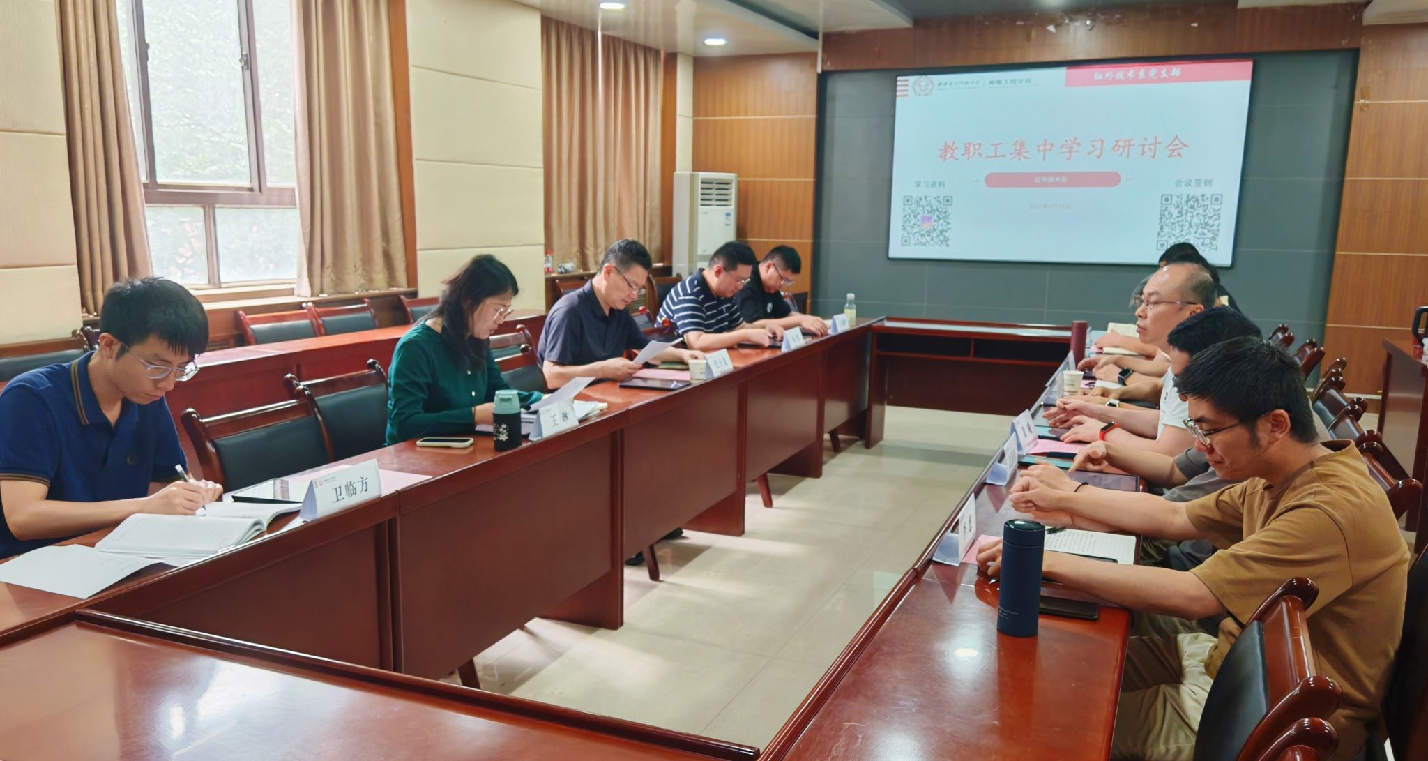(通讯员:姜萌、李维嘉)6月18日下午,yl8858永利集团红外技术系在北校区西大楼三区412会议室举办教职工集中学习研讨活动,支部联系校领导、公司党委书记任小龙参加研讨,红外技术系全体教师参会。会议由系党支部书记、副主任王琳主持。王琳带领全体教师认真学习了习近平总书记在中共中央政治局第二十次集体学习时的重要讲话、给复旦大学建校120周年的贺信以及对精神文明建设工作作出的重要指示精神,对全国教育大会精神进一步解读学习,...