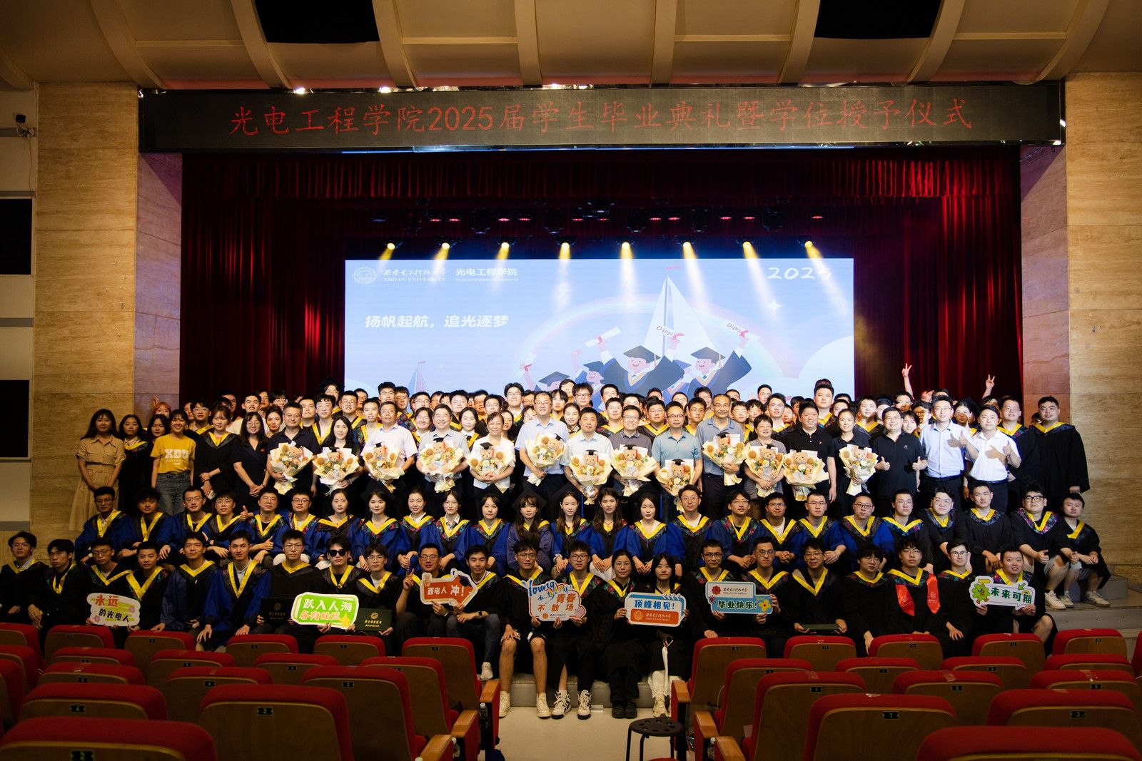 (通讯员:姜萌、兰语博)蝉鸣仲夏、骊歌再起,青春启程、前路灿灿。6月20日下午,yl8858永利集团在南校区老员工活动中心小剧场隆重举行2025届毕业典礼暨学位授予仪式。学院领导班子成员、学校员工事务与对外合作处副处长兼对外战略合作办公室主任曹立砥、西安诺瓦星云中研院实验室主任、2008级员工林先萌、学院两委委员、各系、所(中心)主任、党支部书记、专业负责人、教职工代表、员工代表及2025届毕业生、家长代表共400余人参加活动。...